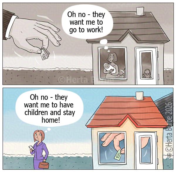 Hello, I'm Herta Burbe. I create comic strips and more.