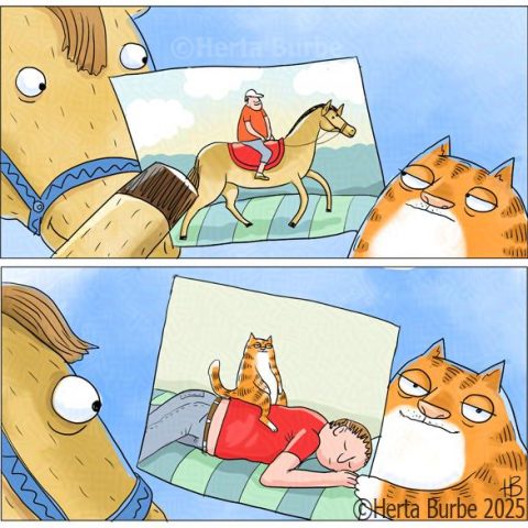 Hello, I'm Herta Burbe. I create comic strips and more.